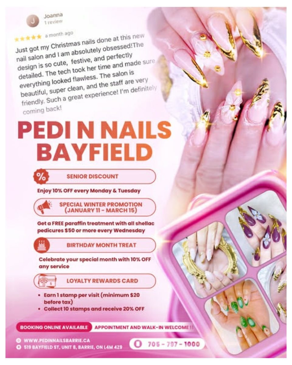Pedi N Nails Barrie - Bayfield's goal is to provide the best services to make your nails look better than ever.